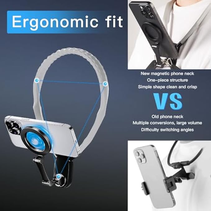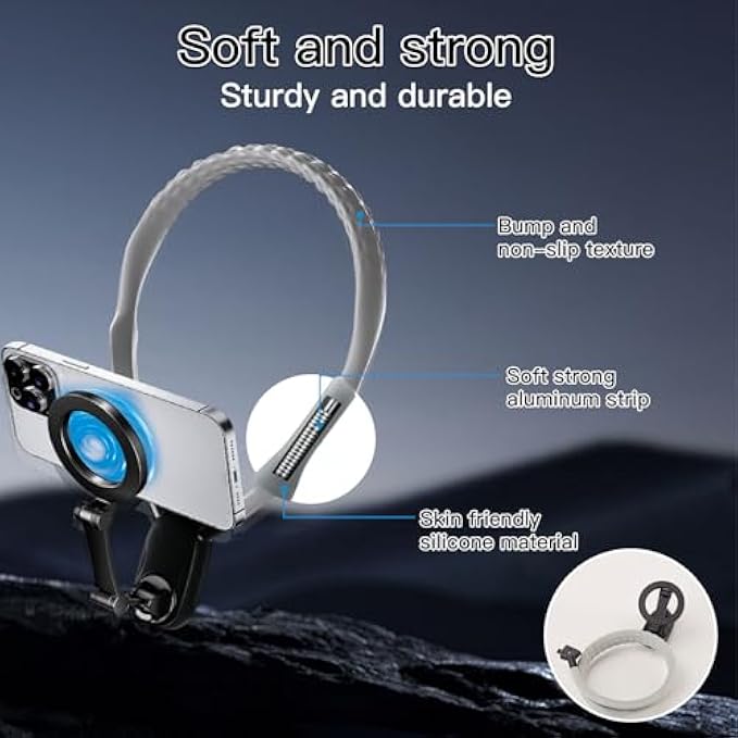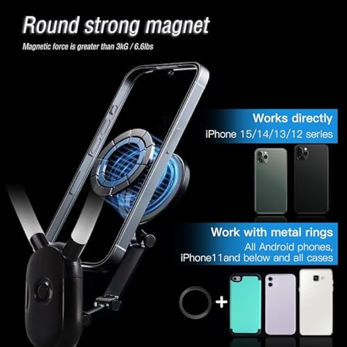 • Strong Magnetic Disassembly: Neck phone stand adopts a magnetic fast disassembly design,16 strong aluminum magnets, super magnetic design, shooting without fear of falling.Note: If your cell phone is the above without magnetism, please use it after wearing the case and install magnetic piece