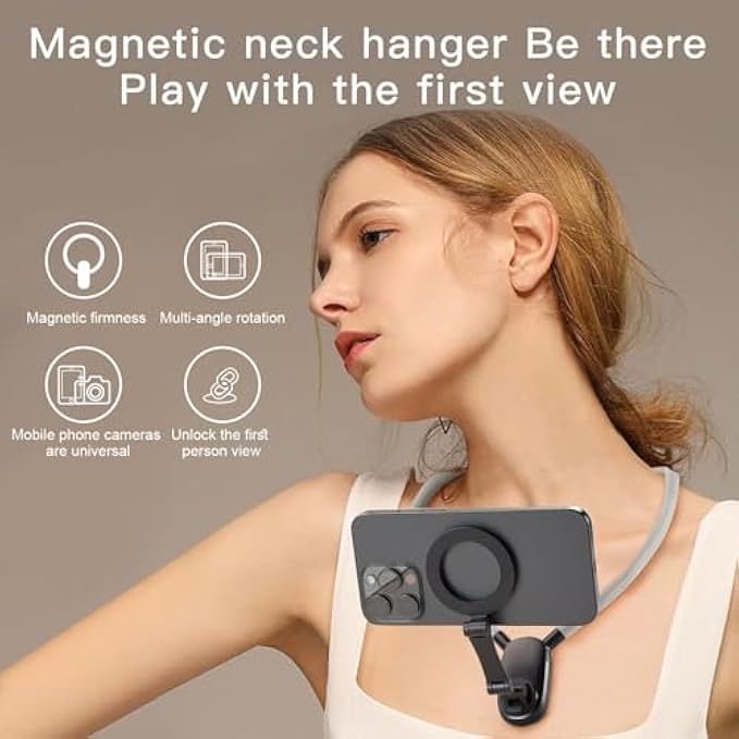 Neck Mount Phone Holder Magnetic Neck Holder for Action Camera & Phone Hand Free Cell Phone Neck Holder for Recording POV Video Vlog