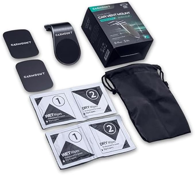 Minimal Vent Mount – Magnetic Phone Holder for Car, Quick Air Vent Clip Magnetic Phone Mount, Portable Travel Bag, Ideal for Rental Phone Holder, Extra Universal Metal Plates