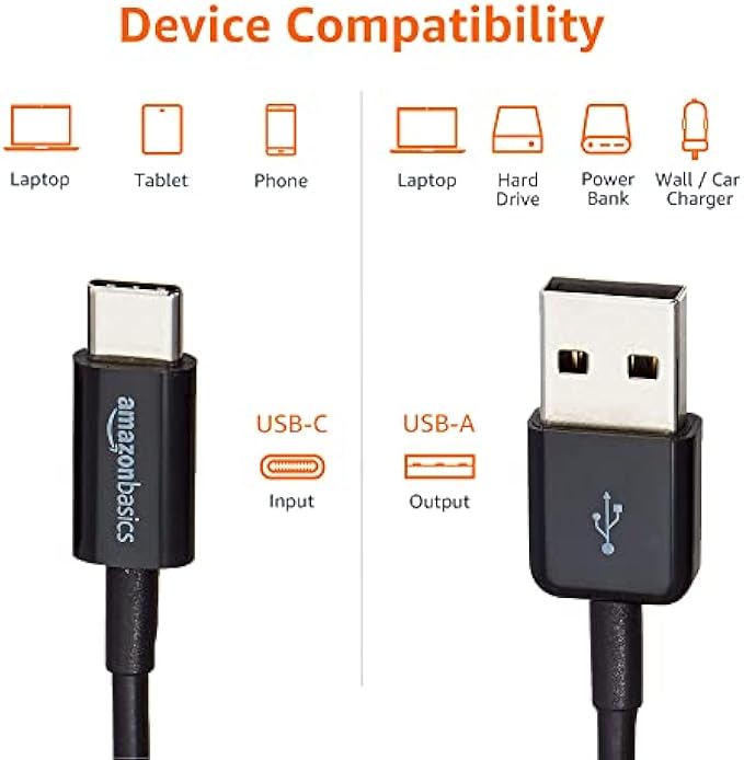 Amazon Basics USB-C to USB-A 2.0 Fast Charger Cable, 6 Foot, 480Mbps Speed, USB-IF Certified, for Apple iPhone 15, iPad, Samsung Galaxy, Tablets, Laptops, Black