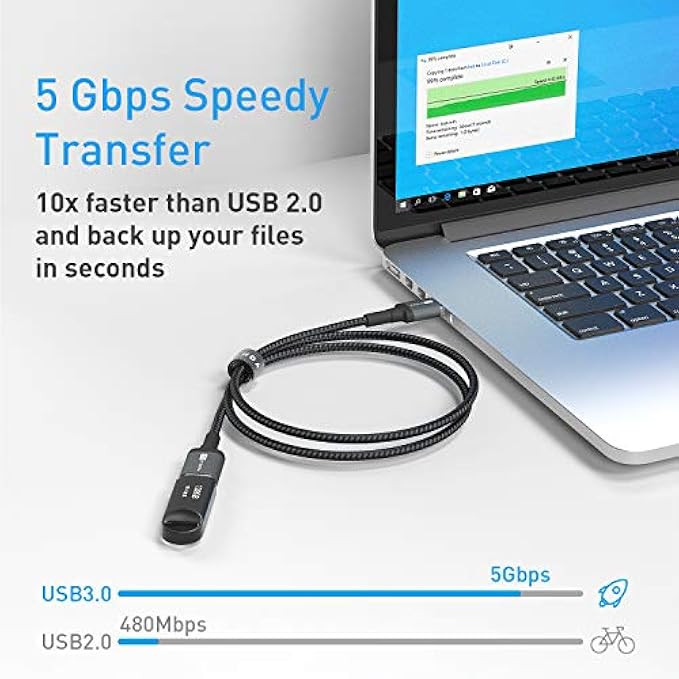 • 【5Gbps High-speed Transfer】With data transfer rate up to 5 Gbps, this USB 3.0 extension cable is 10x faster than USB 2.0 (480 Mbps), backs up your huge files in seconds and ensures fast charging&data syncing. It is also backward compatible with USB 2.0, 1.1, 1.0 standard devices.