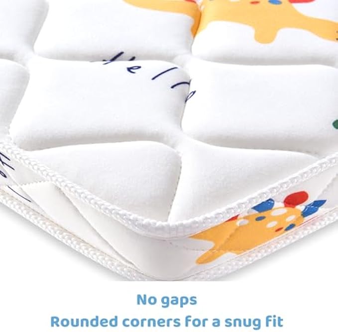 • PERFECT FIT - NO GAPS - Our 38 x 26 Pack N Play Mattresses Topper is designed to fit most Pack N Play Playards. The rounded corner design and superior edge support ensure a snug fit to your playard and reduce gaps, providing a safer space for the baby to play and sleep. IMPORTANT NOTE: Please measure your playard size before purchasing to ensure a perfect fit.
