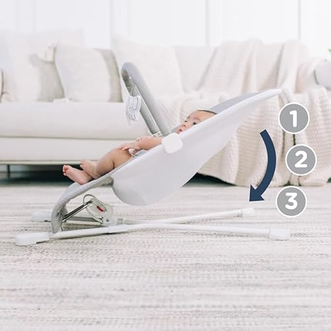 Baby Delight Highland Baby Bouncer | Infant | 0 – 6 Months | 3-Position Recline | Pebble Grey
