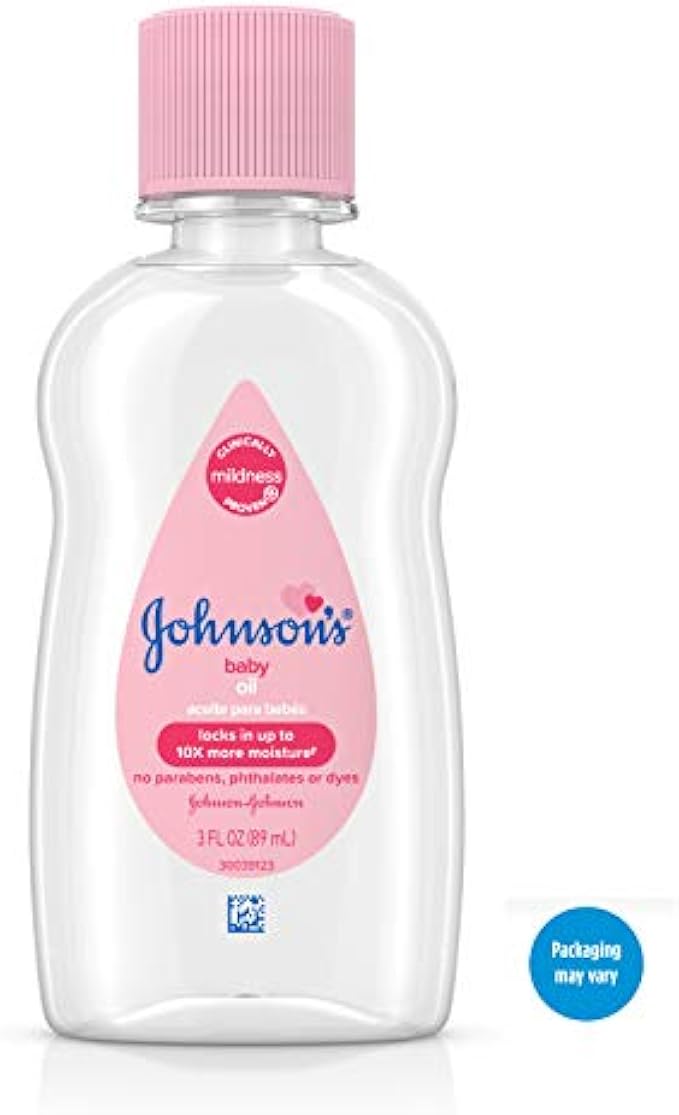 Johnson's Baby Baby Oil, Pure Mineral Oil to Prevent Moisture Loss, Hypoallergenic, Original 3 fl. oz (Pack of 2)