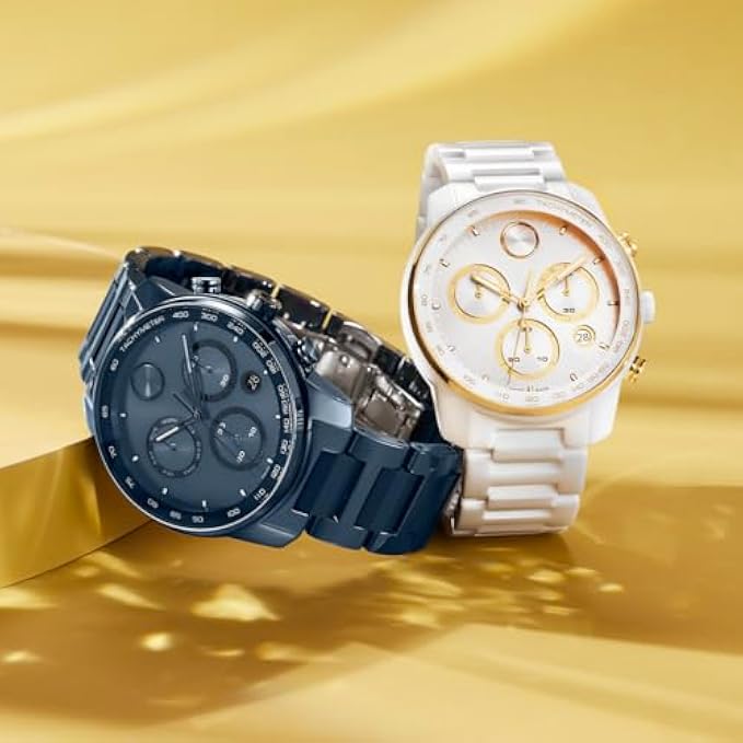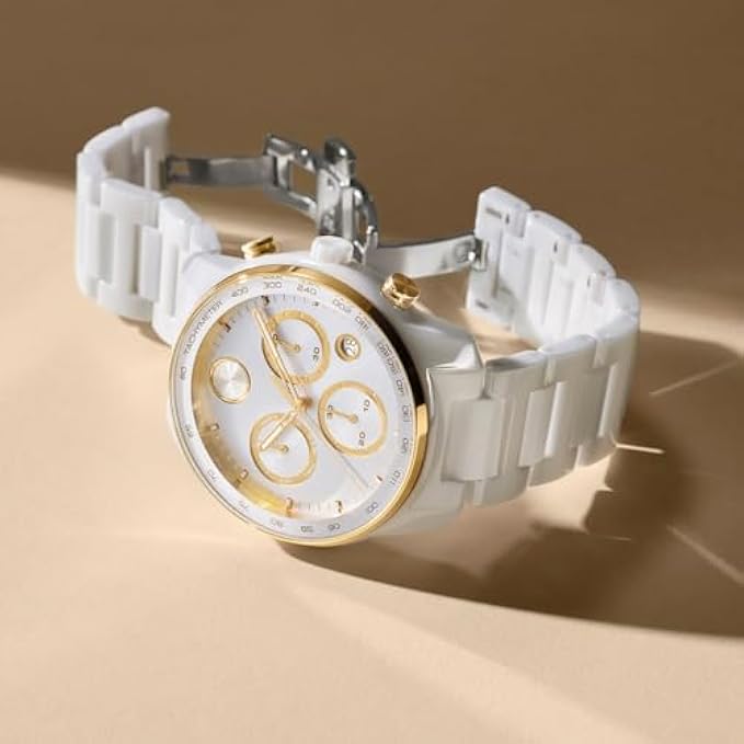 Movado Bold Verso Men's Sport Watch - Swiss Quartz Chronograph Movement, Ceramic Link Bracelet - 5 ATM Water Resistance - Luxury Fashion Timepiece for Him - 44mm