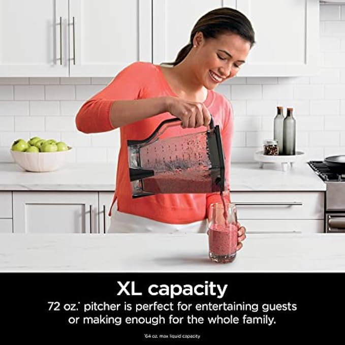 • XL CAPACITY: The 72 oz professional blender pitcher is excellent for making frozen drinks and creamy smoothies for the entire family. 64 oz. max liquid capacity