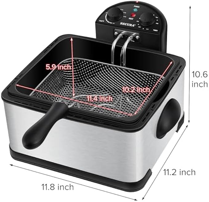 Secura Deep Fryer with 3 Baskets, 21 Cups / 5 Liters Oil Capacity 1700-Watt Stainless-Steel Triple Basket Electric Deep Fryer with Timer Extra Odor Filter, Silver