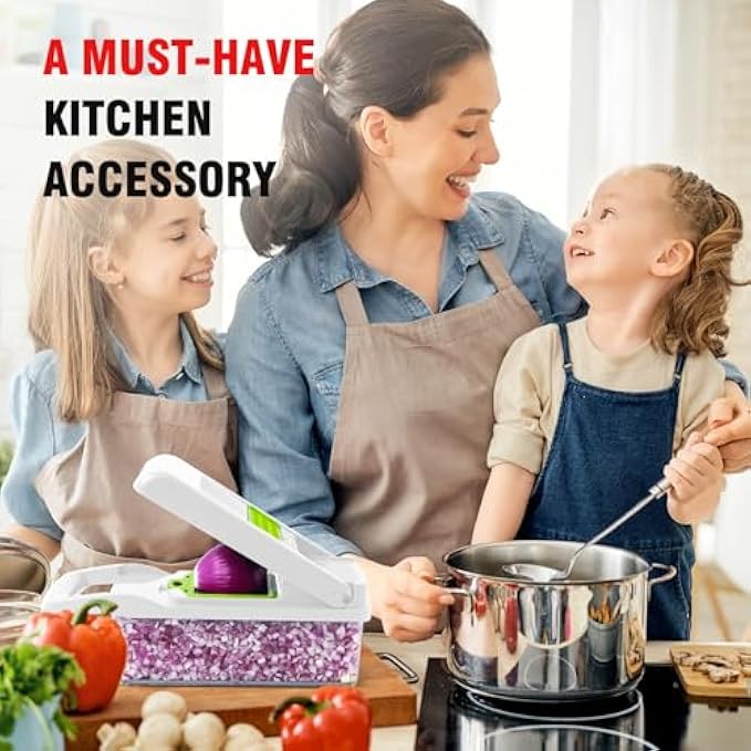 • ✔【EFFICIENT PREPARATIONS】 – The newly upgraded multi-functional vegetable cutter, using traditional blades to chop and slice and dice takes a lot of time and effort. Like tomatoes, peppers, cabbage, cucumbers, onions, garlic, etc., the chopper tool can reduce the time of this process, so you will not have trouble cooking or cutting vegetables and fruits. This makes it easier to add vegetables to your diet, add diversified nutrition to your family meal, and never miss any important nutrition.