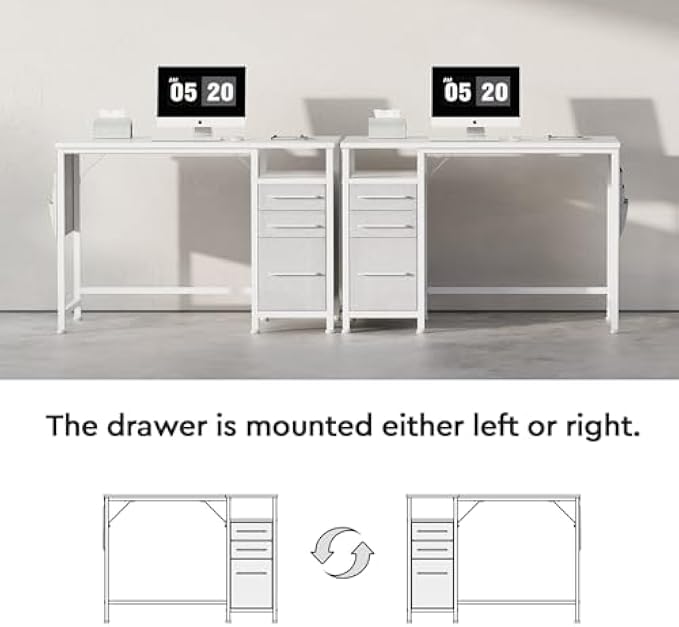 • 【More Options】This home office desk is available in three colors and three sizes. Fully meet the needs of different scenarios.The drawers of this desk can be installed on either side of the computer desk, but please confirm the installation position before assembly.