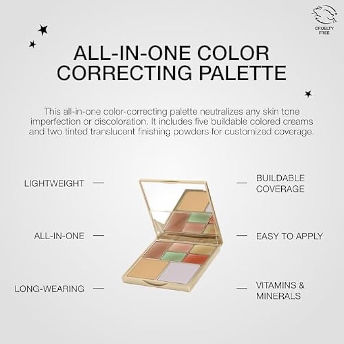 Stila Color Correcting Palette, Correct And Perfect All In One, Cream & Powder Face Makeup for Dark Circles, Redness, 0.45 Oz.