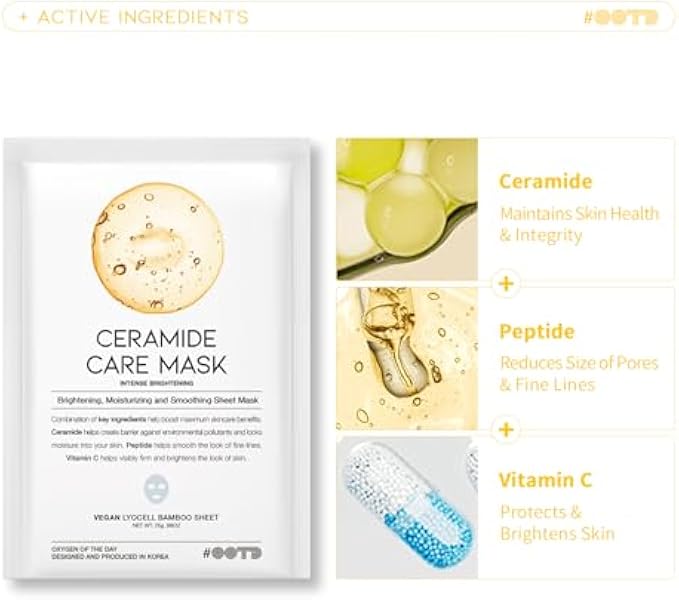 • CERAMIDE CARE MASK - Brightening, Moisturizing and Smoothing with Ceramide, Peptide and Vitamin C.Bolsters the natural skin barrier to protect against the damaging effects of sun exposure and other natural elements, reducing the chance of skin disorders.