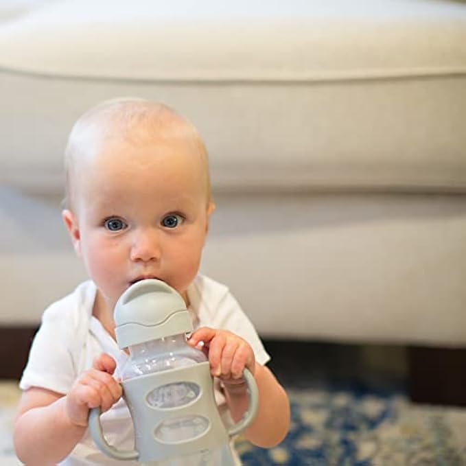Dr. Brown's Milestones Wide-Neck Sippy Straw Bottle with 100% Silicone Handles and Weighted Straw, 9 oz/270 mL, Gray & Green, 6m+