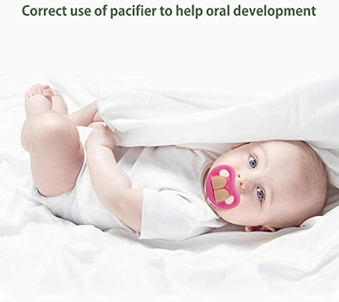 • MOUTH SUPPORT PACIFIER: Orthodontic pacifier designed for natural oral development, helps supports the shape of a baby’s developing palate, jaw, and gums. Unisex pacifier. Cute baby pacifiers designed with adorable kiss lips and different styles of funny mustaches make them a perfect baby shower gift for small boys or girls!
