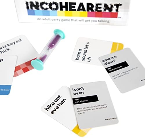 Incohearent, The Guess the Gibberish Party Game by Relatable, A Funny Card Game for Adults, Great for Bachelorette Party Games or Game Night Games, Includes 400 Cards, Instructions, and 1 Sand Timer