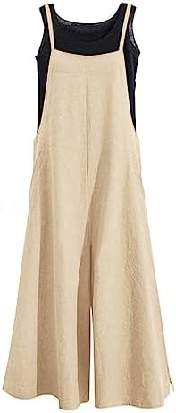 YESNO Women Casual Loose Long Bib Pants Wide Leg Jumpsuits Baggy Cotton Rompers Overalls with Pockets PZZTYP2