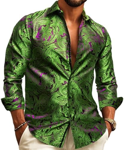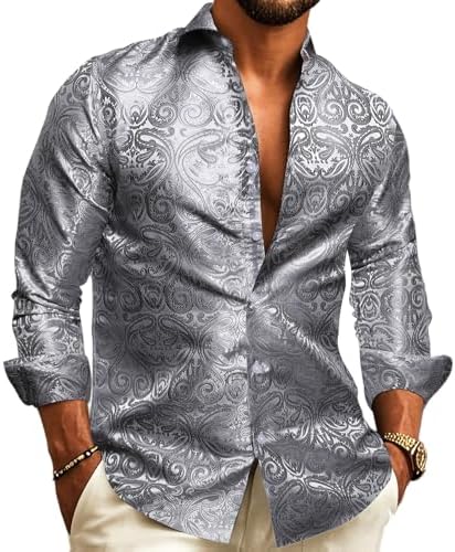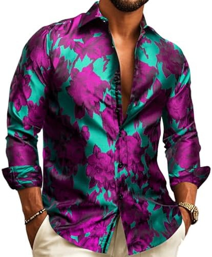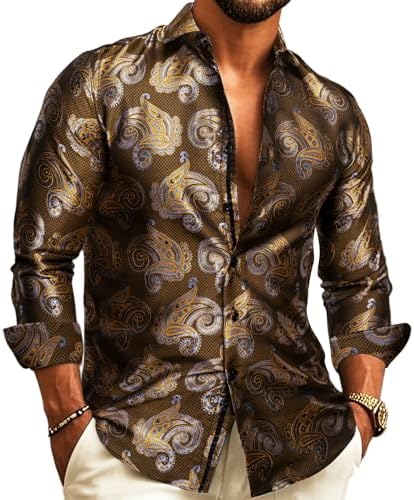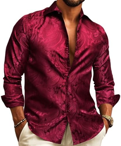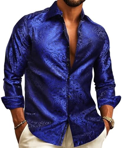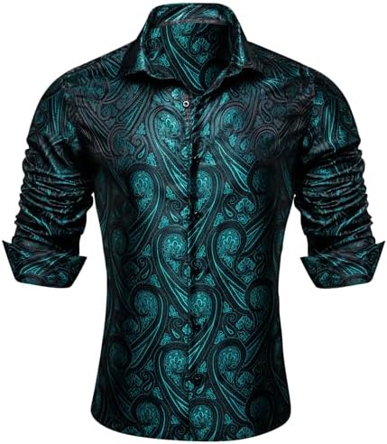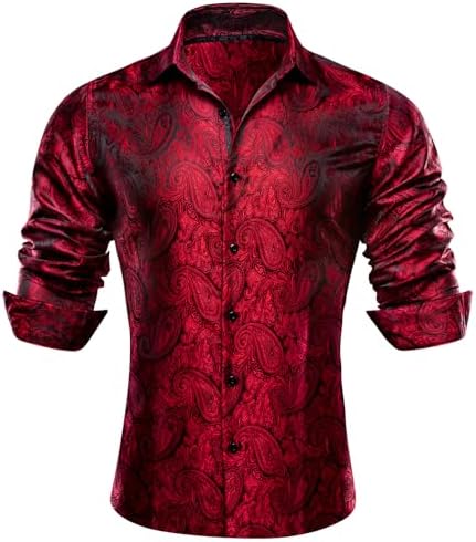 Western Vintage Styles-Unique design button shirts of floral and paisley show your personality and good taste.Classic mens black dress shirt is great choice of for wedding, party,business,meeting, night out,club,date,prom,dance,ball,disco,graduation,concert,Halloween, Christmas,etc. Premium Silk-High quality silk and polyester made with 2400 stitches jacquard woven craft,all floral paisley patterns have strong stereo sense,design level abundant,feel soft,luster,smooth,comfortable,offer you luxurious feel and an elegant sheen. Catch All Attention-Classic black/passionate red/mysterious blue/elegant teal/noble green/peaceful grey/glaring gold/graceful pink...Over 50 colors and designs for you,you can always find your lucky color in Barry.Wang Store. Sweet Gift-Best gift for friends/husband/father/son in special days like Valentine's Day, Father's Day,Thanksgiving Day,Christmas,New Year or birthday,or surprising gifts in daily life. Washing Note-High-density manufacturing makes the shirts more durable,no fading or pilling.It is recommended to hand wash or machine wash in cold water to protect the fabric's texture and color. This shirt can be ironed at low temperatures #8,715 in Clothing, Shoes & Jewelry ( ) #106 in