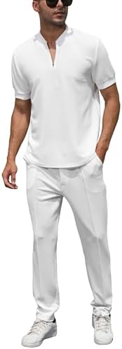 Material: 92% Polyester, 8% Spandex, Breathable, Soft, Stretchy, Relaxed, Stand Collar, Casual Look, Anti-wrinkle, Keeps You Comfortable. Features: Features Oblique Bubble Weaving Textured Fabric, Vogue Oblique Foam Texture Type, Quarter Zip Design Make You More Fashion. Textured Pattern Design Make it More Fashion Than Basic Suit Set, Soft Touch and Good Flexibility, Simultaneously Ensures Your Stylish Look and Free Movement. Stylish Design: Fashion Mens Tracksuit 2 Piece Set with adjustable Zipper Front and Stand Up Collar, Simple Colors, Short Sleeve/Long Sleeve, Pants Elastic Waistband Sweatpants, 2 Side Pockets, Elastic Waist Design with a Drawstring to Maintain High Performance in Sports, Simple and Classic Style, The Latest Fashion Trends, Never Go Out of Date. 2 Piece Set: The Mens Tracksuit 2 Piece Set Includes a Stand Collar Sweatshirt and a Jogger Sweatpants, Pants Two Side Pockets, Convenient for You to Bring Belongings, Like Keys, Phone and Wallet. Perfect for Daily Wear and Outdoor Activities. Multi-Use: These Men's Casual Tracksuits 2 Pieces Set Brings You Comfort, Looking Handsome While Retaining Ease of Movement and Added Comfort. Suitable for All Casual, Leisure, Sports, Fashion and Cool, Party, Outdoor, Office Working, Meeting, Golfing, Hiking, Business, Vacation, Beach Club, Exercise, Fitness, The Comfortable Fabric is Suitable for Wearing it All Day Long, Comfy in Every Season. #27,545 in Clothing, Shoes & Jewelry ( ) #207 in