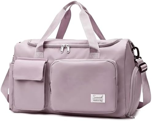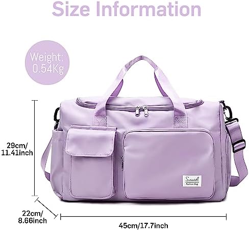 Travel Duffel Bag with Shoes Compartment Sports Gym Bag with Dry Wet Separated Pocket for Men and Women, Overnight Bag Weekender Bag Training Handbag Yoga Bag - Purple