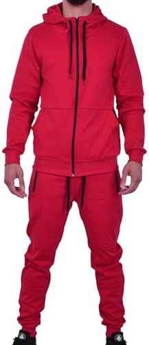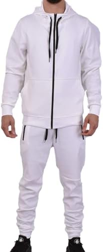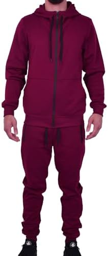 Riflessi Men's Athletic Sports Casual 2 Piece Solid Color Tracksuit Hoodie Jogger Pants Sweatsuit Set
