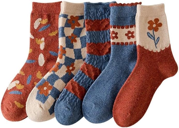 5/10 Pairs Wool Socks for Women Thick Knit Vintage Cute Floral Crew Socks