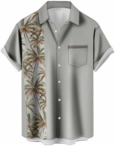 Hawaiian Bowling Shirts for Men Short Sleeve Printed Regular Fit Summer Beach Casual Button Down Aloha Shirts