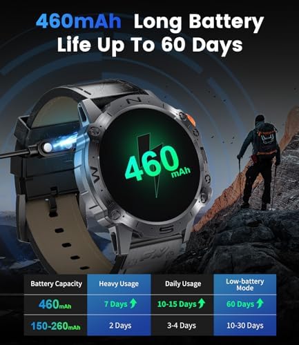 Smart Watches for Men with AI Voice/Bluetooth Call,1.43”AMOLED Always On Display,126+ Sports Modes,60-Day Battery Life,5ATM Waterproof Fitness Tracker with Health Monitor (Leather)