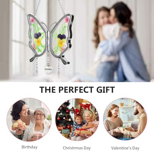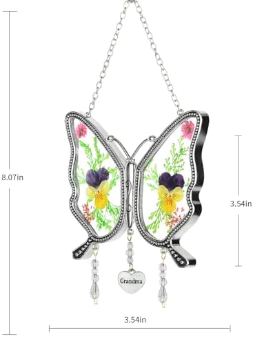 Gifts for Grandma Butterfly Suncatcher with Real Flowers Handmade Butterfly Wind Chime Gift for Grandma Nana Unique Birthday Gifts for Grandma Hanging Ornament for Wall Window Garden
