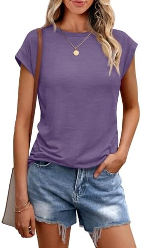 Material: Polyester+rayon+spandex. Loose fit and comfortable, breathable and skin-friendly. Ladies casual cap sleeve tops suitable for spring Features: Women summer short sleeve t-shirt, boat neck blouse, solid color basic tshirts, lightweight business dressy tops, tank tops for women Casual shirt: Women fashion classy tee can be worn both at home and outdoor. Business work outfits. Loose fit tunic for women Occasion: This womens cute T shirts is suitable for resort wear, rave, country concert, festival, night out, going out, beach, date night, brunch, airport, vacation, workout, gym, make you comfy in your casual life. You can freely pair it with flat shoes and jeans Size: Please carefully refer to our size chart. You will choose a top that fits you better #328 in Clothing, Shoes & Jewelry ( ) #12 in