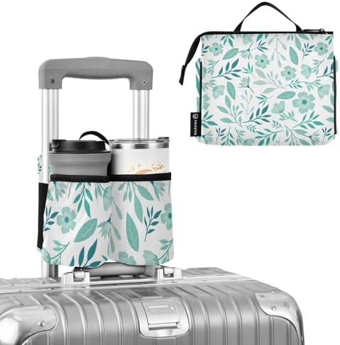Material: The luggage cup holder for suitcases is made of polyester fiber, which is lightweight, not easy to faded or break and durable to use Size: The size of this luggage cup holder is about 7.9 x 3.9 x 4.9 inch, suitable to hold coffee cups, drink cups or water bottles with a diameter not exceeding 3.3 inch Multifunctional Drink Carrier: The travel cup holder for luggage is multifunctional. There are 2 cup slots to easily hold beverage cups, juice cups and water cups. The zippered bag on the back can prevent inside items from falling out, 5.9 inch in height and can store your small items, such as mobile phone, plane tickets, train ticket, ID card and coins Free Your Hands: There is an elastic band in the middle of the suitcase cup holder, so you can easily install the luggage drink holder into the suitcase to free your hands. Meanwhile, the cup holder for luggage comes with a black handle, you can conveniently carry this luggage cup caddy to travel or go on a picnic Great Gift: The portable luggage travel cup holder is a perfect travel accessory, very suitable for traveling, for camping and for hiking. The drink carrier with handle is printed with various patterns, so it is also a good gift for coffee lover, business men/ women, frequent travel friends, flight attendants and parents with kids to make them have a pleasant travel experience