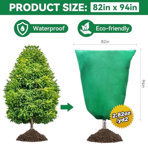 2 Packs Plant Covers Freeze Protection 82" x 94" 2.82oz/yd² Heavy Duty Winter Cold Weather Frost Cloth Blankets, Garden Warm Jacket Bags with Zipper & Drawstring for Outdoor Plants Fruit Tree Potted