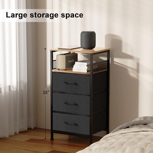 Nightstand, 3 Drawers Bedside Table, 2-Tier Side Table with Fabric Drawers, End Table with Open Shelf for Living Room, Kitchen, Entryway, Natural Oak