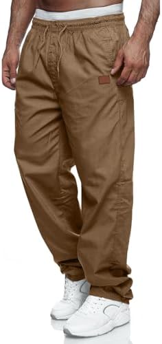 Mens Casual Jogger Pants Relaxed Fit Cargo Pants Drawstring Sweatpants Hiking Outdoor Twill Sport Pants