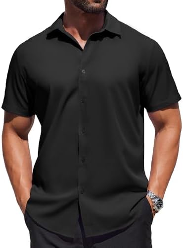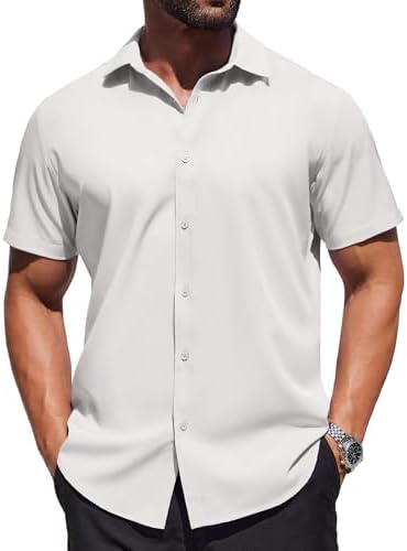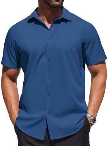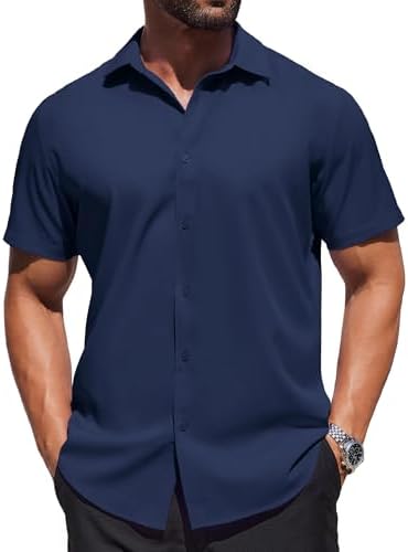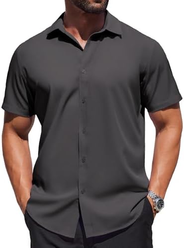 Lightweight Comfort All-Day Wear: This COOFANDY mens button down short sleeve shirt feels like a second skin! The soft, airy fabric offers a smooth, breathable experience that keeps you comfortable from sunrise to sunset Classic Style: With its spread collar, sleek button down design, and solid color, this wrinkle free dress shirt is the perfect balance of timeless and trendy. It's tailored to a regular fit, effortlessly giving you that fresh, polished look! Effortlessly Stylish: Summer-ready and versatile! Dress it down with jeans or level up with formal pants—this business casual dress shirt adapts to your day, whether it's a laid-back outing or something more formal Perfect for Any Occasion: Business casual, a day out, weddings, or date nights, this attire regular fit shirt got you covered. It's that versatile staple that works great on its own or as a layering piece for endless styling options Warm Tips: No extra fuss here! Just toss the no tuck short sleeve shirt in the wash, and it’s good to go. Check the size chart before ordering to make sure you get the best fit #120,356 in Clothing, Shoes & Jewelry ( ) #1,103 in