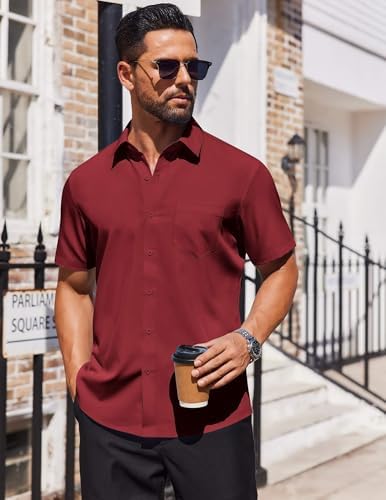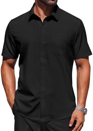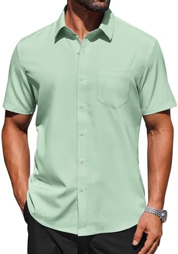 COOFANDY Mens Short Sleeve Button Down Shirts Lightweight Stain Shield Business Casual Dress Shirt Wrinkle Free