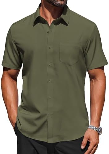 STAIN SHIELD: Mens Short Sleeve Button Down Shirts are made of waterproof and stain shield fabric, which can block moisture, keep clothes dry and clean, and reduce the frequency of washing. When faced with stains such as coffee liquid, gently wipe and instantly dry, allowing you to avoid embarrassment in your life. Stain-resistant fabric is easy to clean, just rub gently, stains are gone, saving energy PREMIUM FABRIC: Mens Business Casual Shirt are designed for summer, with spandex added, lightweight, breathable and comfortable so you can stay lightweight and breathable in the hot summer, and cool all summer; Mens Short Sleeve Dress Shirts are stretchy and wrinkle free, which increases the convenience and comfort of daily wear MULTIPLE OCCASIONS: From hiking to casual business, Mens Dress Shirts is designed to meet the demands of an active lifestyle. Men's Button Up Shirts Short Sleeve Shirts are perfect for casual everyday wear, hiking, fishing, traveling, business meetings, weddings, offices, parties, etc., and can easily cope with weather changes and dirt in outdoor environments MATCHING:COOFANDY Mens Shirt is a versatile wardrobe essential. Casual Shirts can be paired with shorts/casual pants to create a casual and spontaneous summer look. Formal Shirts for men can be paired with a tie and chinos or dress pants for a business look; and with sport pants and outdoor shoes to deal with sudden rain or stains WARM TIP: Mens Wrinkle Free Mo Tuck Dress Shirts are machine washable and durable. Please refer to our size chart before ordering men's button down work shirts #122,494 in Clothing, Shoes & Jewelry ( ) #1,115 in