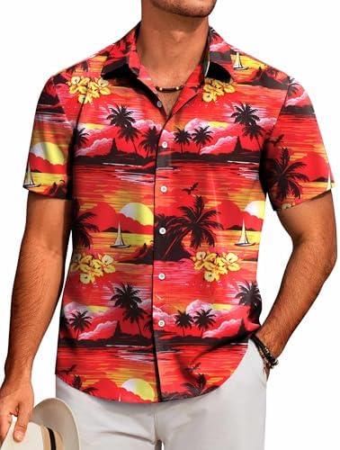 COOFANDY Mens Hawaiian Shirts Short Sleeve Floral Button Down Shirt Tropical Casual Summer Beach Shirts