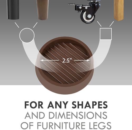Non Slip Furniture Pads, 2.5” Round Rubber Furniture Caster Cups, 4 Pcs Furniture Coasters, Non Skid Furniture Grippers, Anti Slide Furniture Feet Floor Protectors for Bed Couch Stoppers - Brown