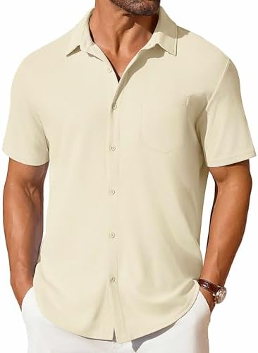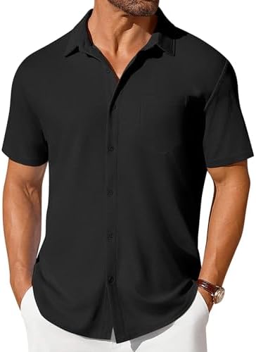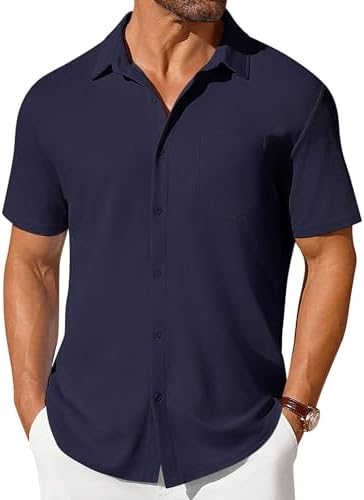 Waffle Textured---Waffle shirts for men is wrinkle-free, soft, stretch, non-iron, skin-friendly and lightweight, which reduces your trouble of taking care of clothes in daily life; It can also absorb sweat to keep you cool and comfortable all day. Special Design---COOFANDY Waffle Knit Wrinkle-Free Stretch Textured Shirt, featuring a special waffle texture, classic button-down collar, button closure, short sleeves, adds a touch of sophistication and fashion to the shirt Multiple Matches---Mens short sleeve button down shirt can be paired with shorts and casual sneakers to create a lively daily casual look, or paired with a T-shirt and sunglasses to create a relaxed holiday style,a must-have for casual outings or beach getaways Occasion---Men casual shirt can easy to hold on the style of different occasions, whether it is daily casual, summer vacation or business; Suitable for daily, beach travel, tropical vacation, wedding, travel, cruise, party, camping, dating, home, office, business, etc. Warm Tips---Mens button down shirt can machine washable, US size. Please refer to the size chart before ordering #29,833 in Clothing, Shoes & Jewelry ( ) #351 in