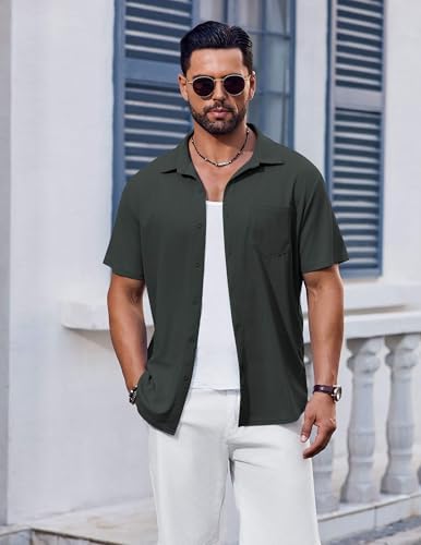 COOFANDY Men's Short Sleeve Button Down Shirt Casual Summer Beach Shirt Waffle Knit Shirt Wrinkle Free Untucked Shirt