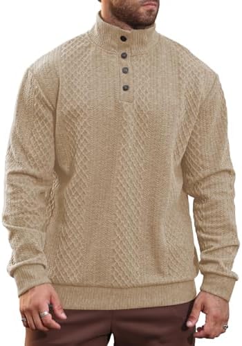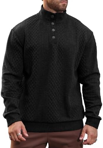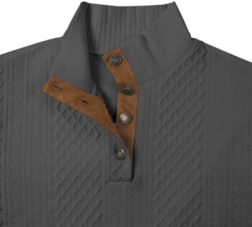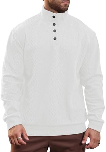 Men's Quilted Sweatshirt Casual Long Sleeve Stand Collar Quarter Button Knitted Pullover Sweatshirts