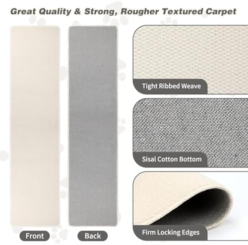 Extra Large Size, Space Saver: Size matters comes to your cat's comfort and enjoyment, Our wall cat scratcher is 71"/180cm x 15.8"/40cm and 0.4"/1cm thick; Generous dimensions offer ample surface area for cats to stretch, scratch, and maintain their claws, and ensures that multiple cats can enjoy scratching simultaneously without territorial disputes; It's flush to wall and does not take up space, provides an engaging vertical element for cats, encouraging healthy stretching and exercise Thickened Wear-Resistant Material: Designed to withstand severe scratching, our tall cat scratcher by selected polypropylene yarn for tight ribbed weave; Front carpet is loop-pile tight woven fabric, the back is resemble sisal cotton, which is wrinkle-free, shed-resistant, whilst maintaining a soft, luxurious feel; With 0.32" thickness, the wall mounted cat scratcher can withstand the intense scratching of 3 cats; Fine edge banding avoid the mat from falling off and falling apart Multi-Scene, Save Furniture: You can customize the wall carpet for cats and put them wherever you want to protect from scratches, for example, it can be placed on walls, couches, corner, sofa, floor ect; As an aside, it serves not only as a cat scratching mat or play mat, but also doubles as a sleeping pad, litter pad, corner scratcher, wall scratcher or even a door mat, adapting to various scenarios; Nice distraction from furniture while allow her to stretch, scratch and climb No Shreds for Easily Clean: This cat carpet scratching post doesn't leave cardboard shards all over the house like other paper scratching posts and doesn't get in the way underfoot; So, this cat scratcher wall is low-maintenance, just use a vacuum cleaner to remove dust or wipe with mild detergent damp cloth, your pet can have fun again! In addition, our diy climbing cat scratcher are much more durable than cardboard scratch pads and don't make a mess like a typical cat scratch pad Promotes Healthy Exercise: This cat scratching wall not only deter cats from damaging your belongings but also encourage healthy scratching behavior, helps cats loosen old nail tips, file nails, and can be a good spot to rub on; Best of all, our cat scratch wall give your cat plenty of vertical space to stretch their body, helping them build muscle, relieve stress, and release excess energy; This cat wall climbing cat scratcher is essential for claw maintenance and keep health in cats How to train a cat to use it: Some things that help with our foster cats - show them how to scratch it! First of all, you can put the wall mount cat scratcher in the place where your cat often scratches, such as your sofa; The second step is often a little catnip rubbed in will stimulate interest, or give treats and rewards when they engage with the cat wall corner scratcher, try brushing or petting when they are on the cat scratcher for wall #13,428 in Pet Supplies ( ) #101 in