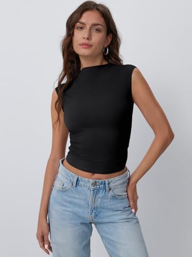 Trendy Queen Womens Mock Neck Basic Tank Tops Going Out Spring Clothes Sleeveless Slim Fitted Cute Shirts Summer Y2K Outfits
