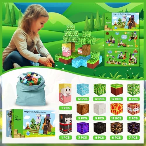 Magnetic Blocks, 100 PCS Building Blocks Set, Magnetic Tiles Building Toys for 3+ Year Old Boys & Girls, STEM Magnetic Building Blocks for Toddlers Kids