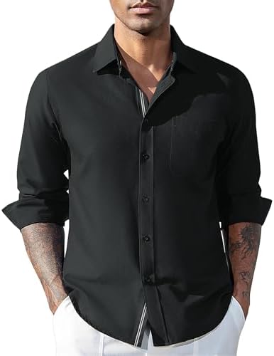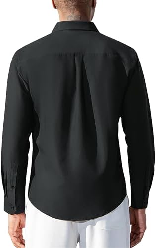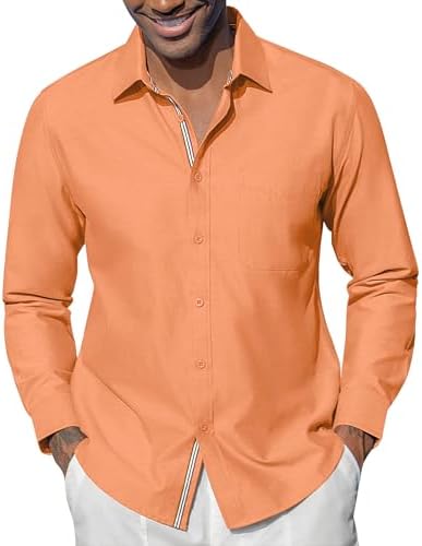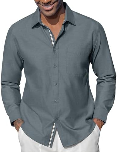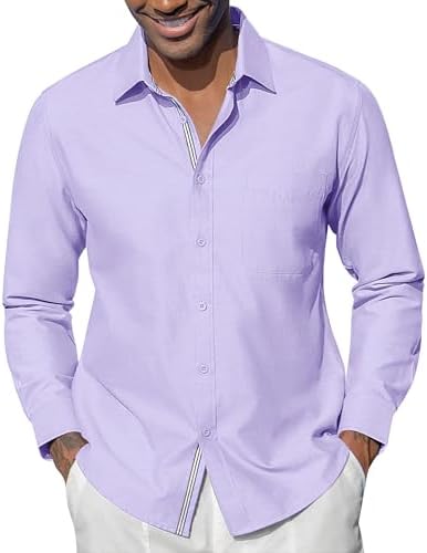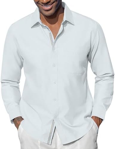 Oxford Dress Shirts for Men Long Sleeve Oxford Casual Dress Button Down Shirts Contrast Button Shirts with Pocket