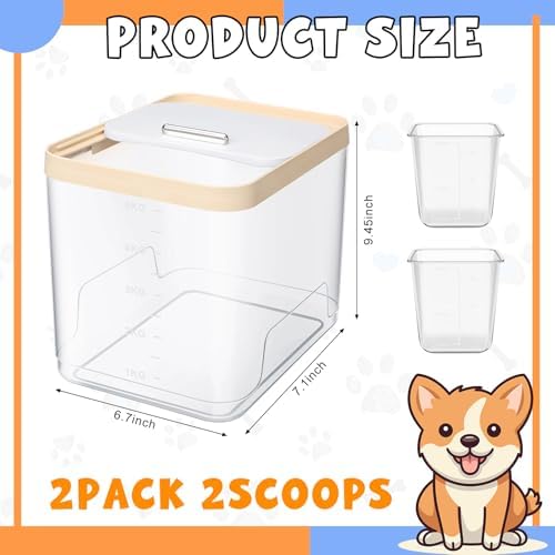 Practical Size and Quantity: this dog food container measures 10.56 quarts and can hold up to 10 lbs; Each package includes 2 separate dog food containers and 2 scoops, allowing you to store different types of food or keep a backup supply Airtight Design: our cat food storage container utilizes an airtight seal technology to keep moisture and humidity out of the food; This ensures the meals keep fresh, locking in the nourishment and flavor your pets love Reliable Material: : this pet food storage bin is crafted from durable plastic material; This container is suitable to neatly store dog, cat or even bird food, making it a versatile storage solution Clear Container Body: the transparent container design allows you to clearly see the amount of food remaining, allowing you to quickly check the remaining amount before going to the pet store; Designed with a wider top, it is easy to open, scoop and clean Design with Scale: our dog food storage container dispenser features a scale design and secure latch for organized storage, space saving and easy access to pet food